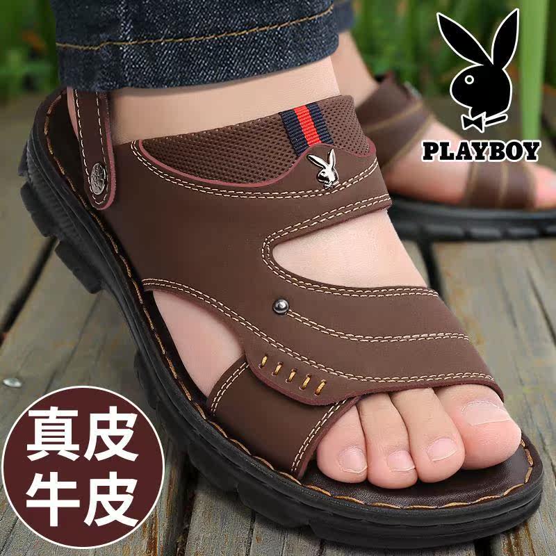 花花公子男鞋2021新款夏季凉鞋凉鞋商务休闲真皮牛皮爸爸凉鞋正品热门设计联盟服务商