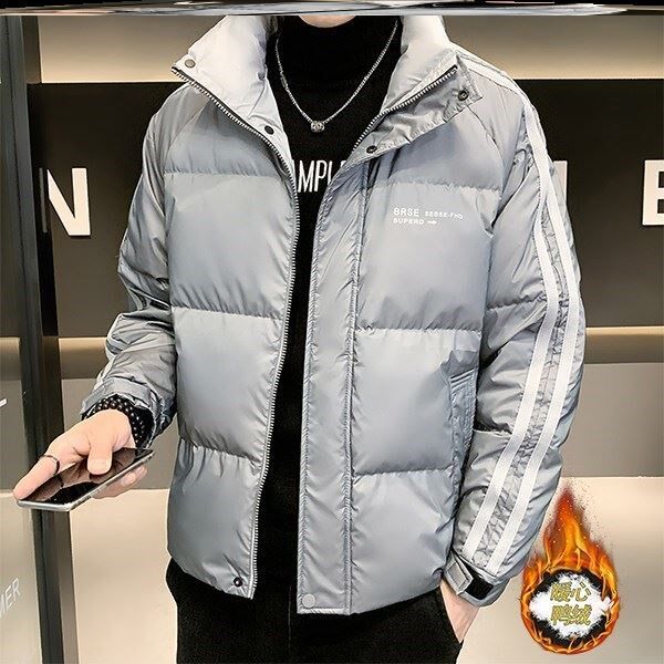 莫革服饰男士外套冬季2021新款加厚外套百搭条纹冬装鸭绒羽绒服。热门设计联盟服务商