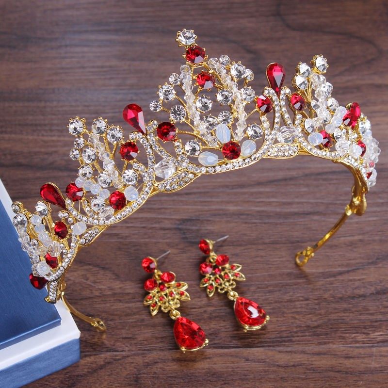 新娘头饰结婚皇冠耳环套装超仙公主红色皇冠婚纱发饰生日女十八岁热门设计联盟服务商