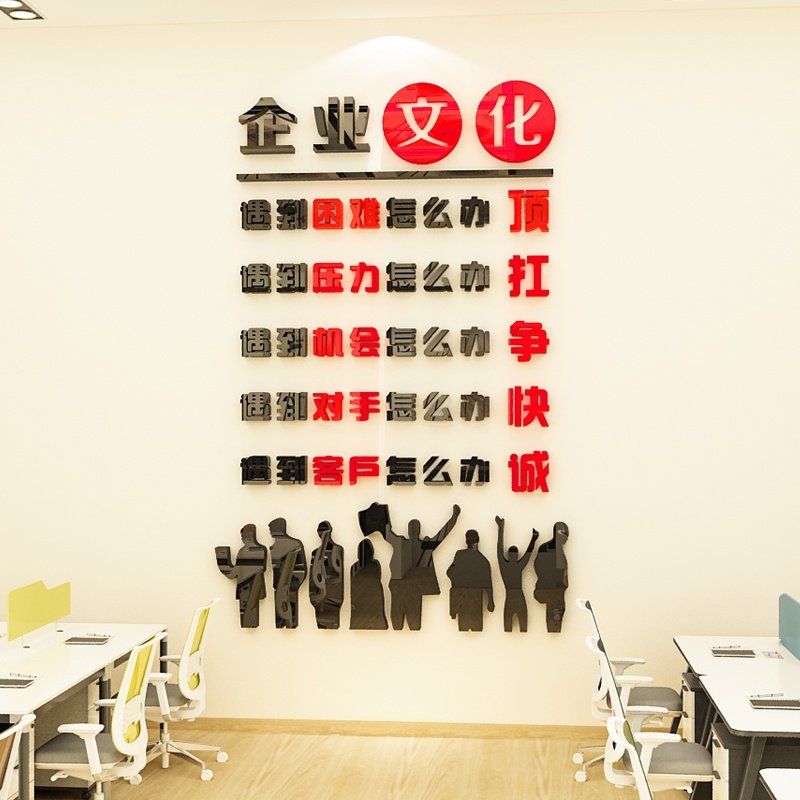新品企业文化公司办公室励志墙贴纸3d立体亚克力标语自粘背景墙面热门设计联盟服务商