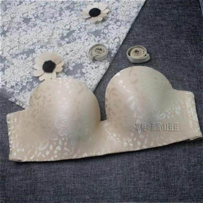 超薄款无肩带文i胸罩防滑大胸u显小抹胸婚纱大码胸贴Q内衣胖mm200热门设计联盟服务商
