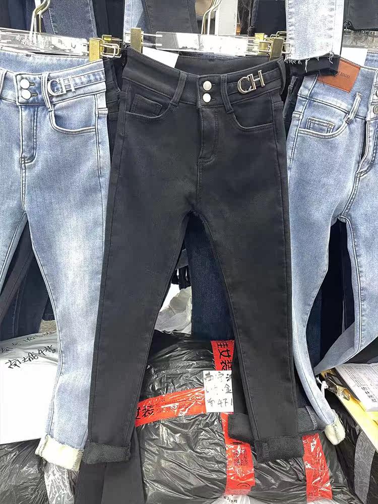 紧身高腰加绒牛仔裤女显瘦冬季2021年新款韩版设计感九分铅笔裤潮热门设计联盟服务商