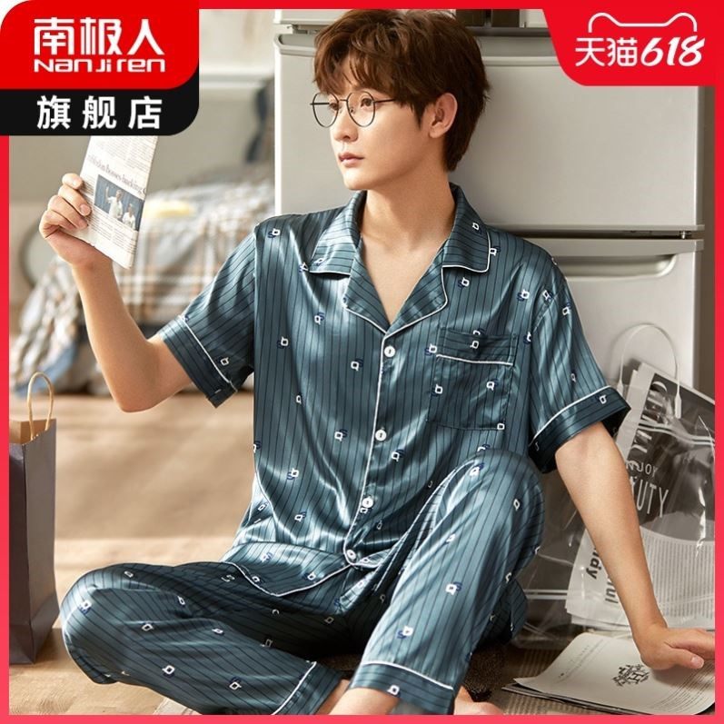 南极人睡衣男春夏季冰丝短袖夏天网红款2021年新款家居服套装薄热门设计联盟服务商