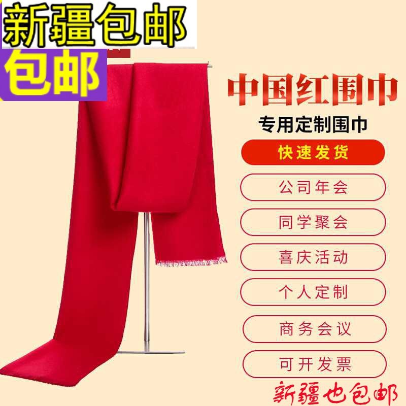 新疆包邮动围脖男女通用中国红团购印制LOGO刺绣福字围巾中国红热门设计联盟服务商