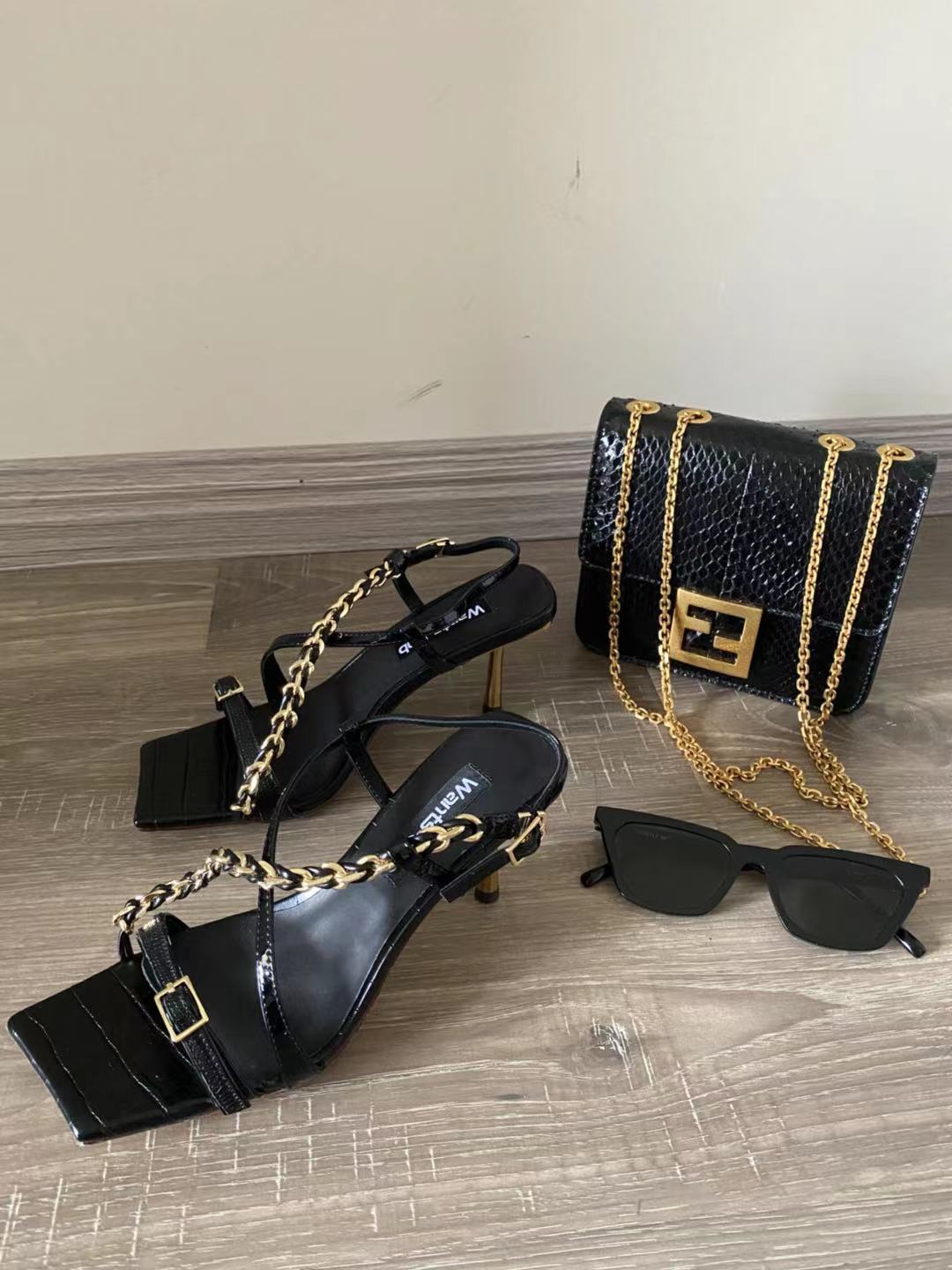 乔乔自留 设计师新款春夏高奢鳄鱼纹黑金凉鞋跟高6cm热门设计联盟服务商